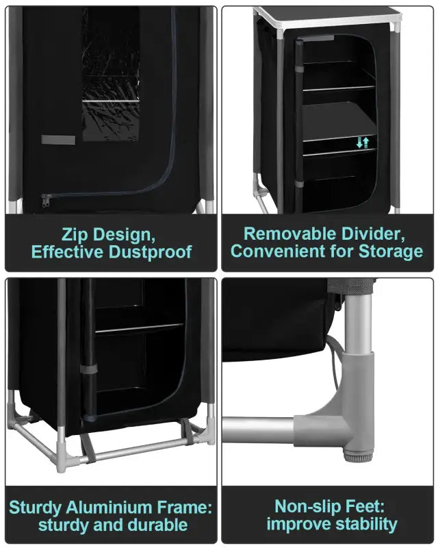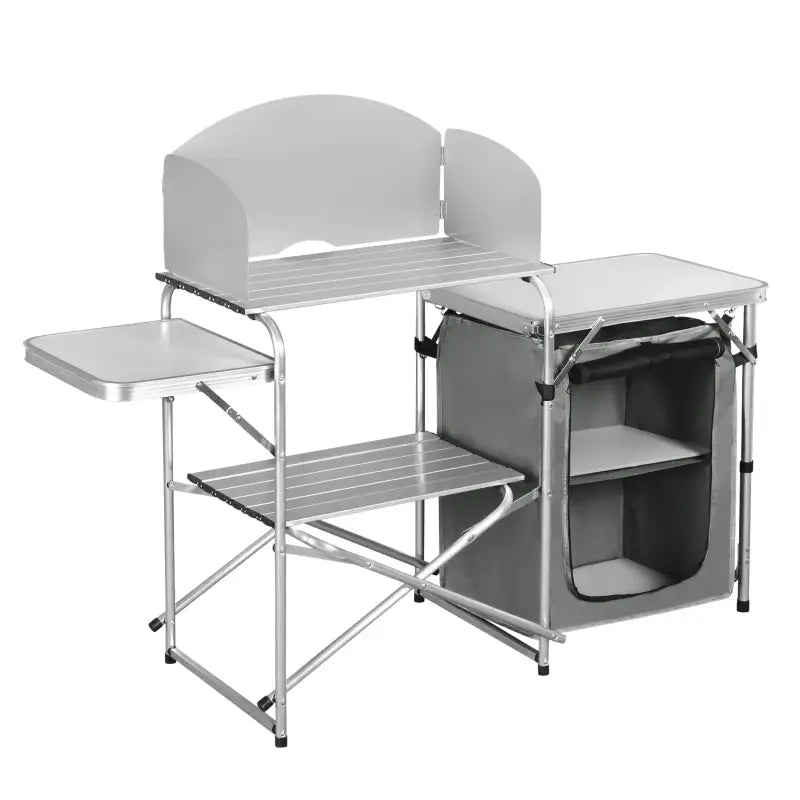 BukkitBow - Multifunctionele Campingkeuken - Roestvrij Staal met MDF en Oxford-Doek - 60kg Laadcapaciteit - Opbergtas Inbegrepen - 147x40x111cm