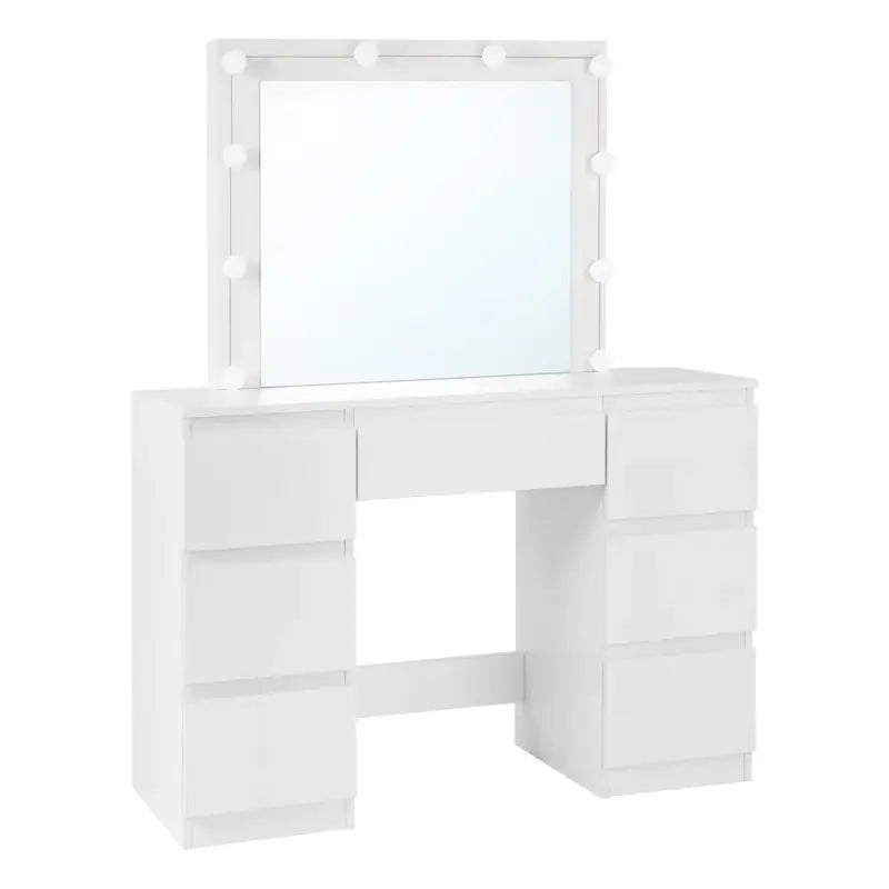 BukkitBow - Kaptafel met Spiegel en LED-Verlichting - Stevig Houtmateriaal - 7 Lades - 110x140,5x39,5cm