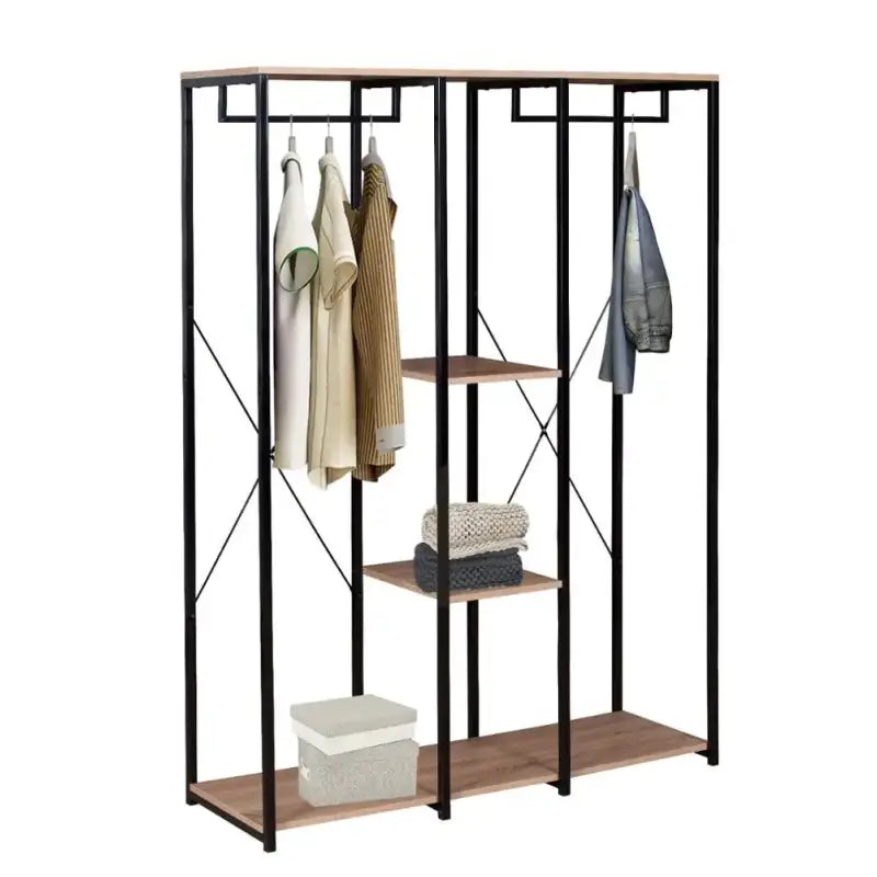 BukkitBow - Open Kledingkast - met Planken en Kledingroedes - Uitklapbare Rekken - Gemaakt van Metaalstof - Zwart