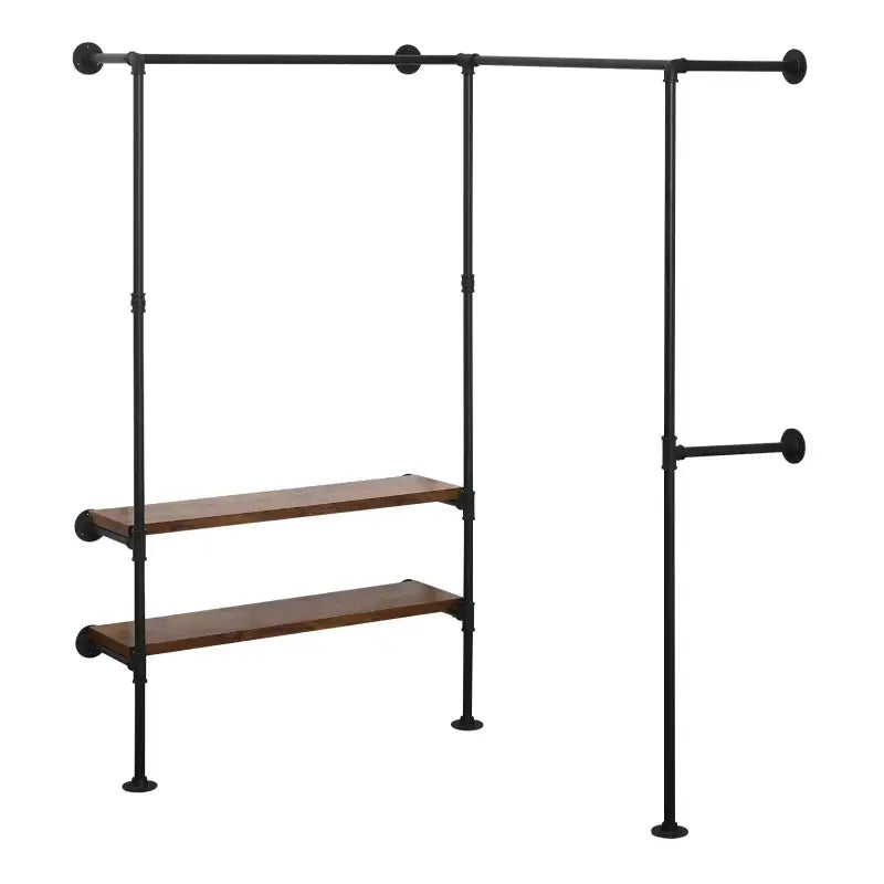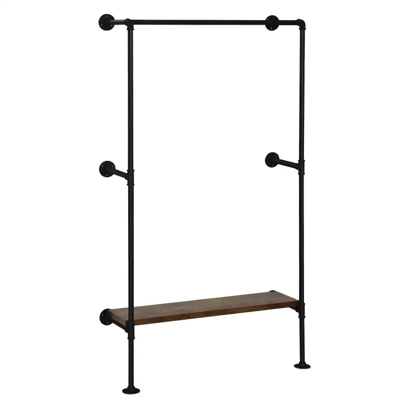 BukkitBow - Wandgemonteerd Kledingrek - Industriël / Vintage Stijl - Met Kledingrail en Plank - Robuust en Ruimtebesparend - 103x35x187cm