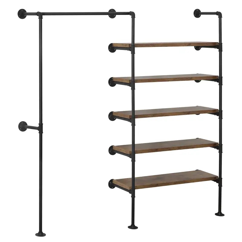 BukkitBow - Ruimtebesparende Hoek Garderobe - Zwart en Vintage Hout - Tot Wel 150 kg Belasting - Industriële en Vintage Stijl - 130.5x187x130.5cm