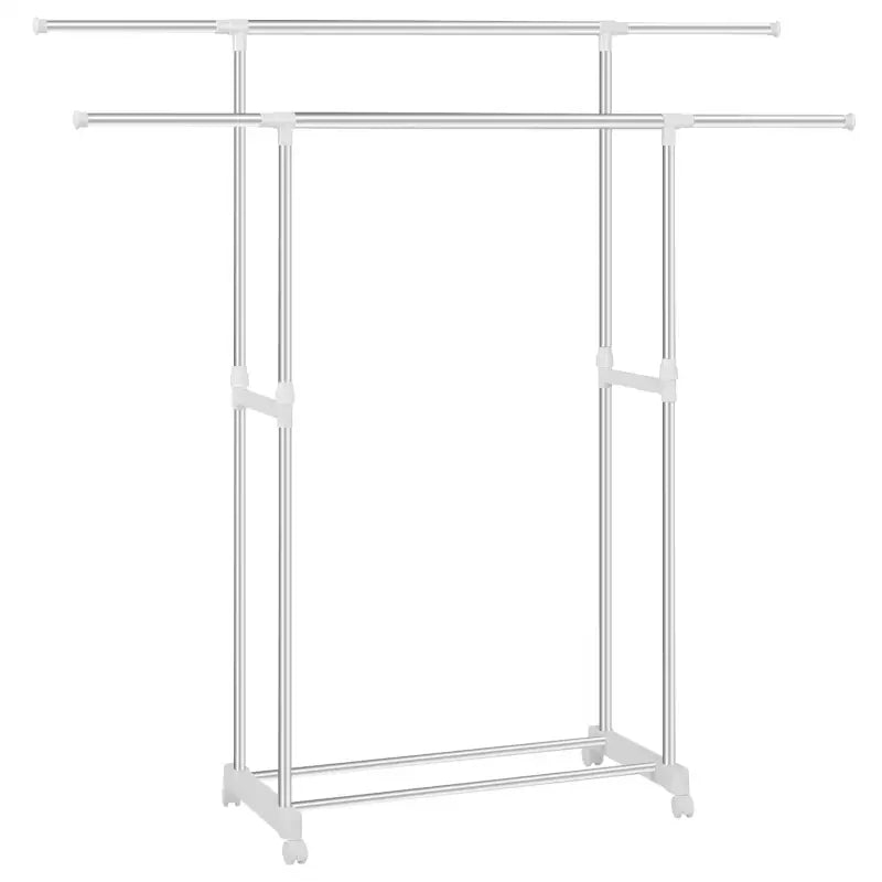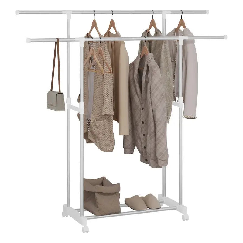 BukkitBow - Uitschuifbaar Kledingrek op Wielen - Roestvrij Staal - Verstelbaar en Draagbaar - Enkele of Dubbele Hangende Stang