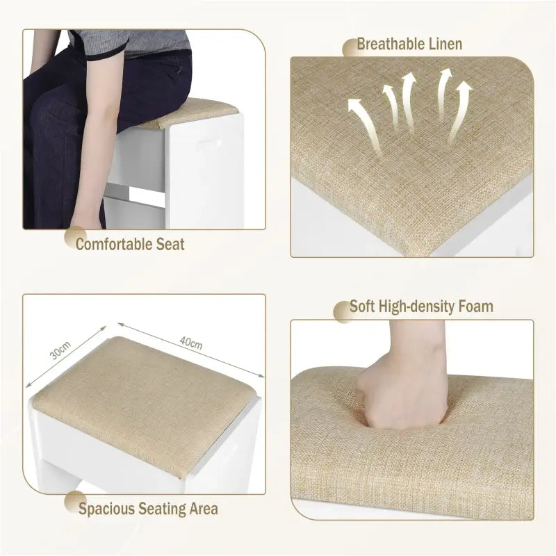 BukkitBow - Veelzijdige Kaptafel Kruk - Linnen met Schuim en MDF - Laadvermogen 150kg - 40x30x45cm