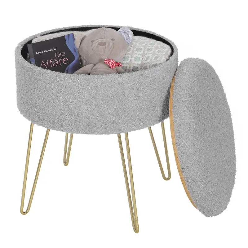 BukkitBow - Poef / Ronde Kruk met Opslag - Teddy Fleece Zitting - Verborgen Opbergruimte - Sterke Draagkracht - 39x44CM